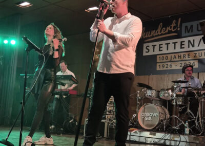 Nach dem offiziellen Festakt, bei dem Essen und Getränke für alle Gäste frei waren – kulinarisch begleitet von der Metzgerei Vohl –, folgte die Geburtstagsparty mit einer Überraschung: Als Partyband des Abends heizten GrooveSix ein, die seit 2011 zum festen Bestandteil des Open Air „Uff dr Wies“ gehören und beim Musikverein schlicht alternativlos sind, wenn es ums Feiern geht. Jung und Alt feierten gemeinsam bis in die Nacht.